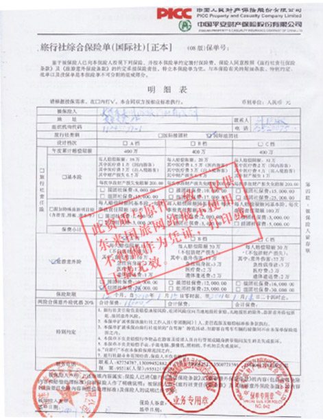 旅行社綜合保險單