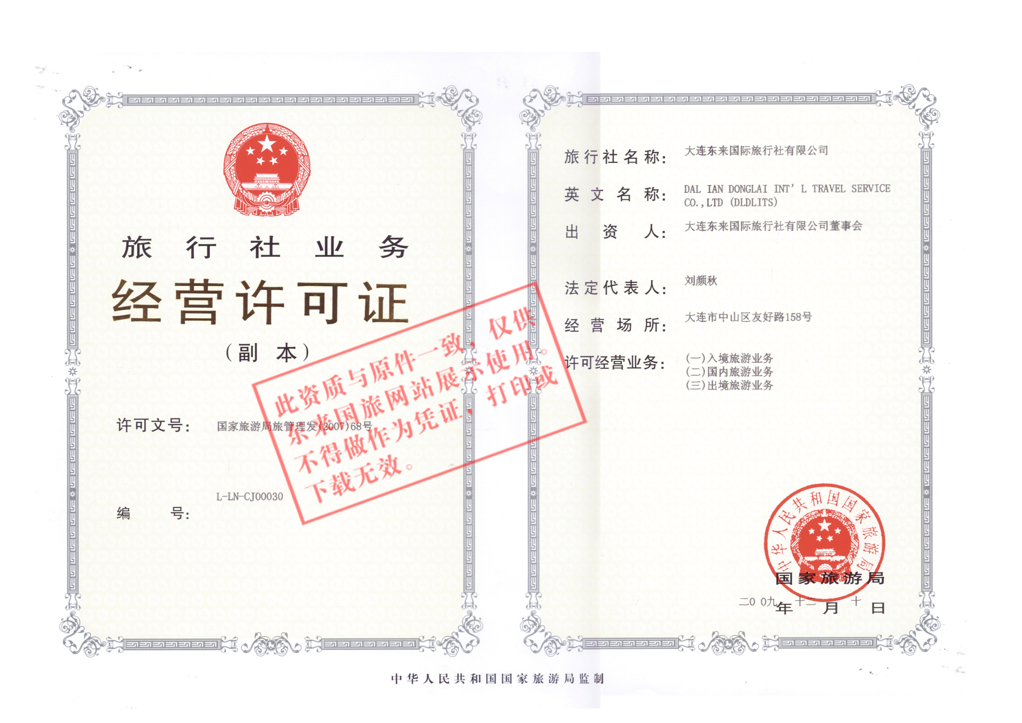 國際旅行社業(yè)務(wù)經(jīng)營許可證