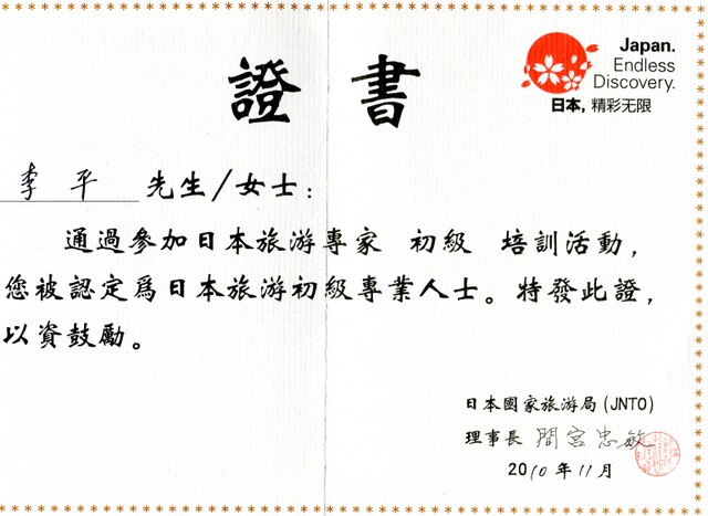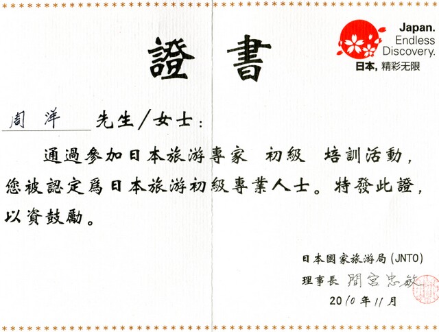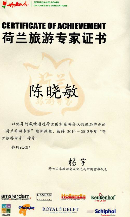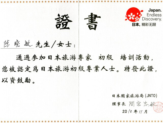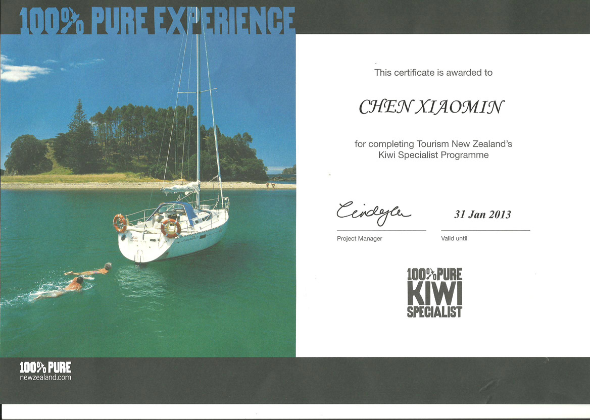 (陳曉敏)新西蘭旅游專家證書